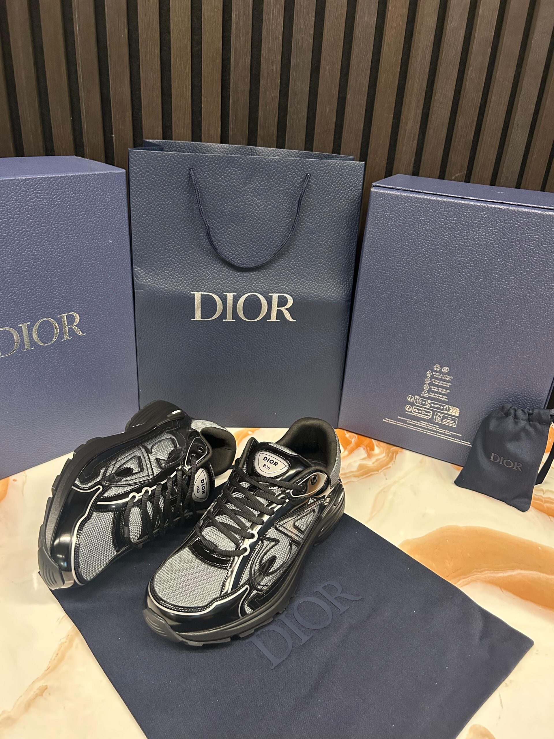 Christian Dior B30 Light Gray Technical Mesh and Black Brilliant-Finish