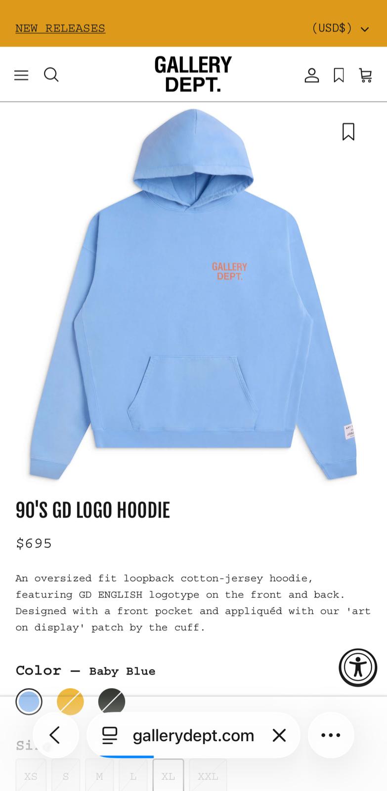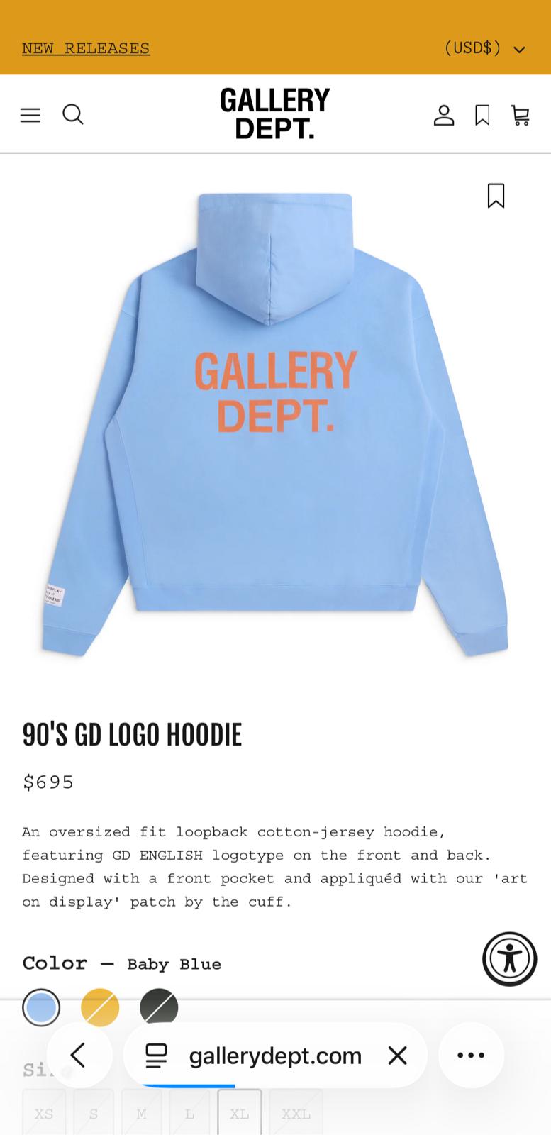 GALLERY DEPT Cotton LightBlue Hoodie